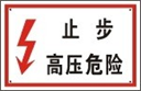 止步高压危险 | 工作地点临近带电设备的遮栏上 室外工作地点附近带电设备的构架横梁上 禁止通行的过道上, 高压试验地点 | 250×200 | 白底红边 | 黑色字,有红 箭头 |